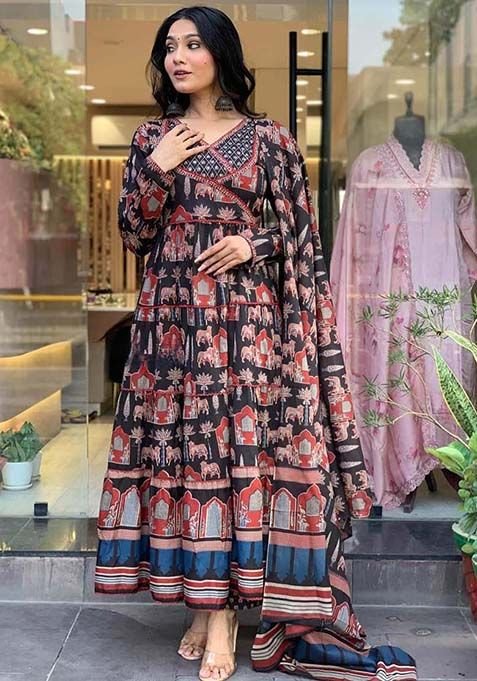 Pair this Black Abstract Print Cotton Kurta Set with matching accessories for a complete, graceful look.