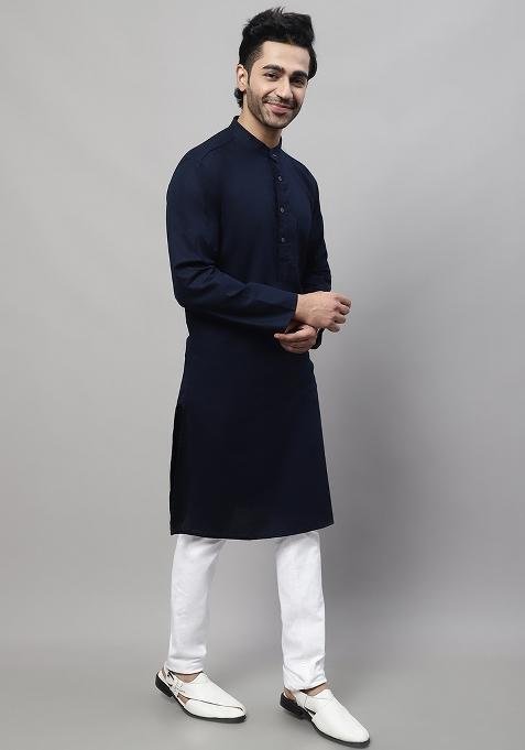 Designed to suit all body types, the Blue Solid Cotton Kurta For Men blends tradition with modern aesthetics.