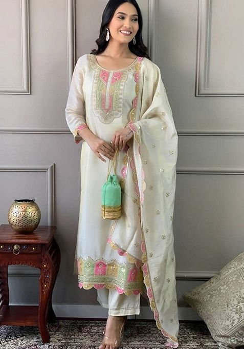 This Cream Embroidered Viscose Kurta Set is made from premium fabrics, ensuring comfort while keeping you stylish.