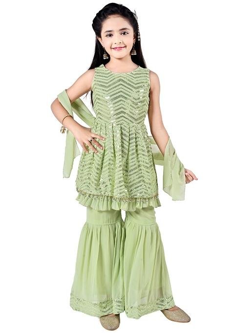 This Green Embellished Georgette Kurta Set For Girls is made from premium fabrics, ensuring comfort while keeping you stylish.