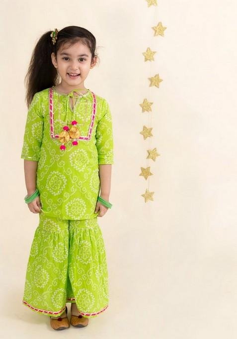 Designed to suit all body types, the Green Embroidered Kurta With Sharara (Set of 2) blends tradition with modern aesthetics.