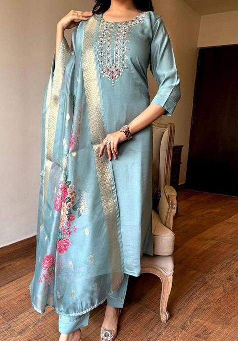 This Grey Embroidered Viscose Kurta Set is made from premium fabrics, ensuring comfort while keeping you stylish.