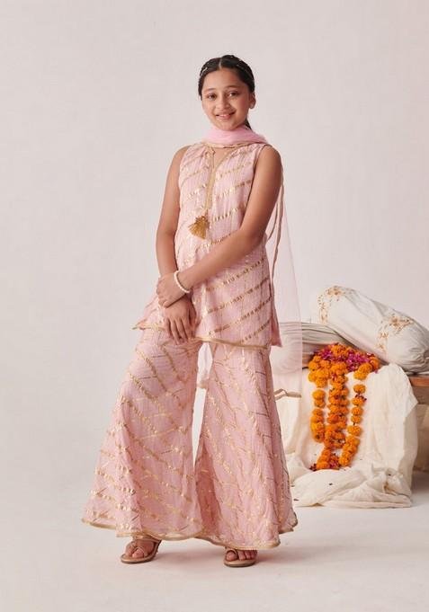 Designed to suit all body types, the Peach Kurta With Sharara And Dupatta (Set of 3) blends tradition with modern aesthetics.