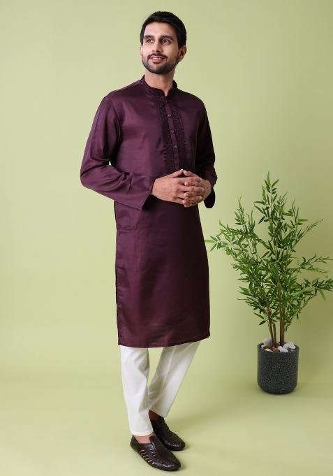 This Purple Embroidered Cotton Silk Kurta For Men is made from premium fabrics, ensuring comfort while keeping you stylish.
